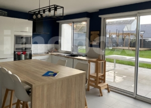 Cette maison de 2019 offre une grande pièce de vie très lumineuse avec cuisine ouverte, à l'étage une grande salle d'eau et 3 chambres avec chacune un espace de rangement