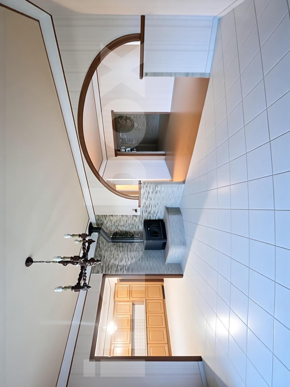 A l'étage, un dégagement desservant pièce de vie avec poêle à Bois, cuisine aménagée et équipée ouverte sur deux loggias, deux chambres sur parquet, salle d'eau et WC.